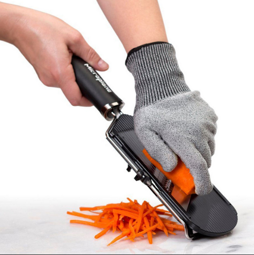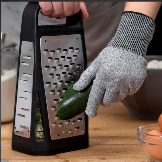 Perfect Gloves for Cutting Vegetables. Microplane blades are engineered to be sharper than the competition, so we've also designed these cut resistant gloves! Protect your hands from accidental contact with sharp blades! Our cut resistant glove fits either hand, and one size fits most. The gloves should be machine washed (not in the dishwasher), or hand washed and allowed to drip dry.