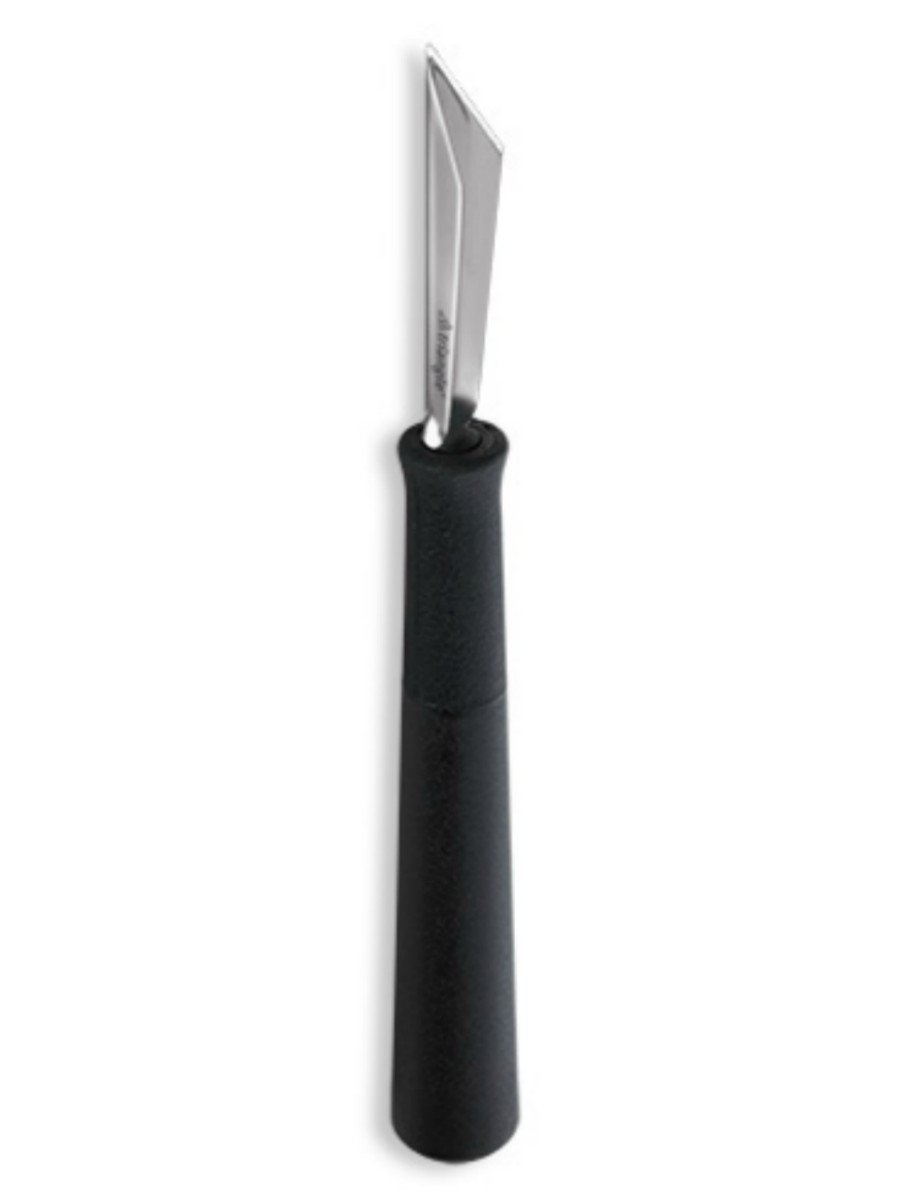 Triangle carving tools E are used to carve V-shapes into fruits, vegetables, cheese and even soap . With their help intricate ornaments are easily made. The smaller the diameter, the finer are the resulting shapes. The digit after the letters are for the different sizes of the knife. 1 is the smallest, while 3 is the largest knife.