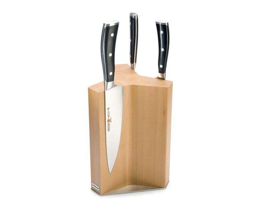 The Wusthof knife block is the ideal way to store and maintain knives in the kitchen. It offers elegance, security and immediate access for their use. From excellent quality wood: High Quality Ash Wood. Internal strong magnets hold each knife.