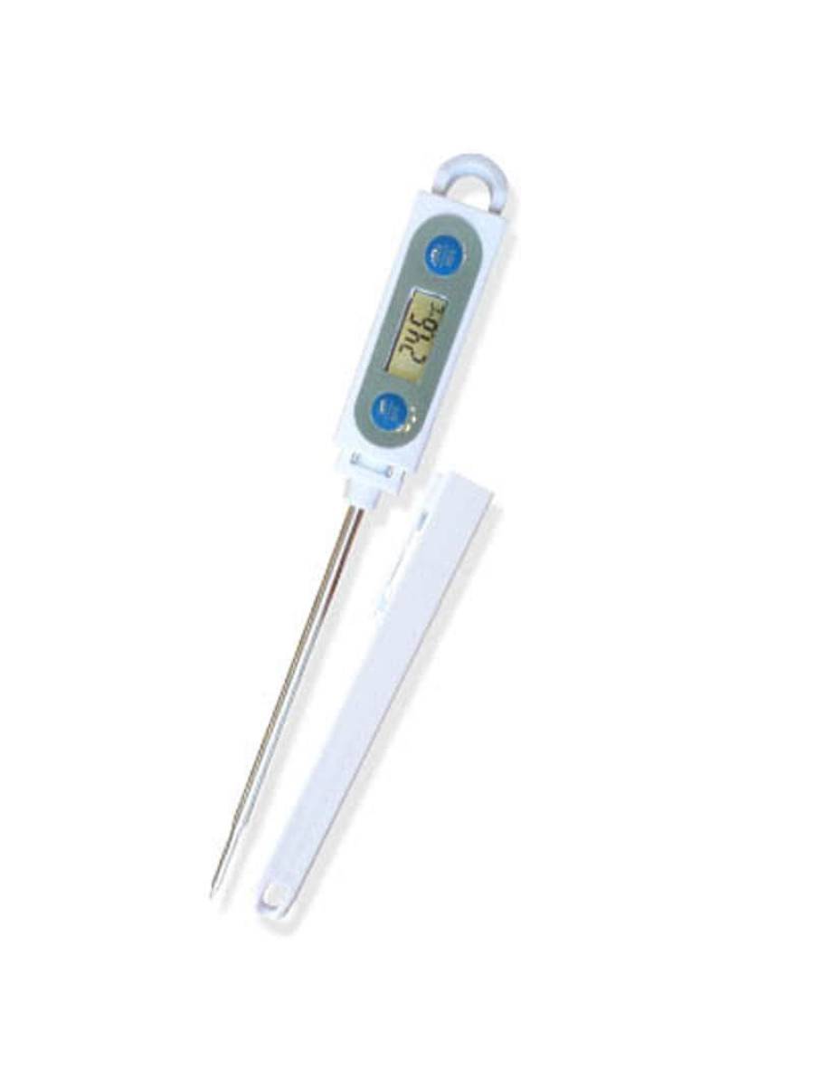 Θερμόμετρο Ακίδας Ψηφιακό -50 έως +200°C, Αδιάβροχο, Με Θήκη Thermolab. Αδιάβροχο θερμόμετρο μαγειρικής με ακίδα για πολλές χρήσεις, με θήκη φύλαξης . Κατασκευασμένο σύμφωνα με τη σύσταση IP65. Ένδειξη θερμοκρασίας από -50 έως +200°C / -58 έως +392°F. Ανάλυση οθόνης: 0.1°C. Ακρίβεια μέτρησης: ±1°C σε θερμοκρασίες 0+100°C, διαφορετικά ±2°C ή ±3°C. Λειτουργεία MAX/MIN. Ακίδα από ανοξείδωτο ατσάλι 12.5 εκατ. Και διάμετρο 0.35 εκατ. Περιλαμβάνονται οδηγίες χρήσης.