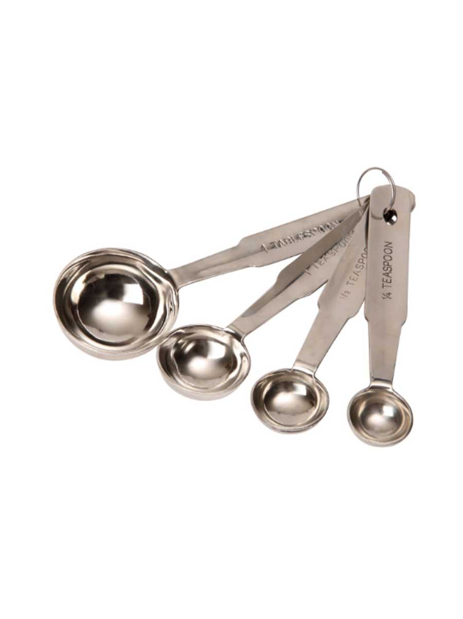 Αυτές οι τέσσερις εύχρηστες μεζούρες από ανοξείδωτο ατσάλι είναι συγκεντρωμένες όλες μαζί σε ένα μεταλλικό δαχτυλίδι. Είναι ιδανικές για ακριβή μέτρηση των συστατικών.