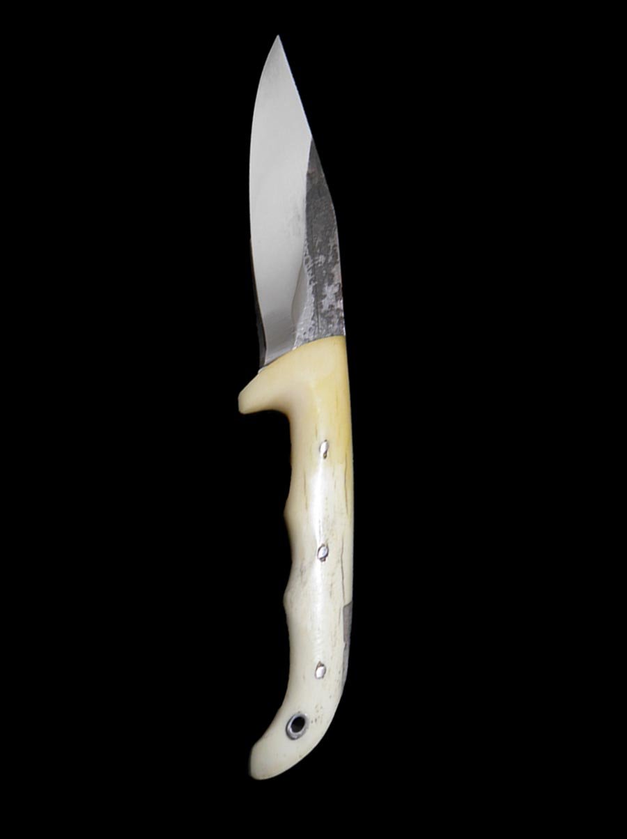 Χειροποίητο μαχαίρι κατασκευασμένο στο καμίνι μας. Σφυρηλατημένο, κοπανιστό στο χέρι με σφυρί και φωτιά. Λάμα από γνήσιο σουστοφυλλο 5mm και λαβή από κόκκαλο μοσχαριού. Σύντροφος στη φύση για κυνηγούς και όχι μόνο. Προδιαγραφές για σκληρή δουλειά. Ένα μαχαίρι κατασκευασμένο στο εργαστήριο μας από υλικά πρώτης ποιότητας για αντοχή σε βάθος χρόνου. Η λάμα του είναι κατάλληλη σε μέγεθος και σκληρότητα για εκδορές θηραμάτων, ξύλων, κόψιμο κρέατος και σφάξιμο. Κοπάνισμα, πελέκημα, επιβίωση. Η λαβή βοήθα στην σταθερότητα και στην προστασία του χεριού κατά τη χρήση για μεσαίες και μεγάλες παλάμες.Οδηγίες