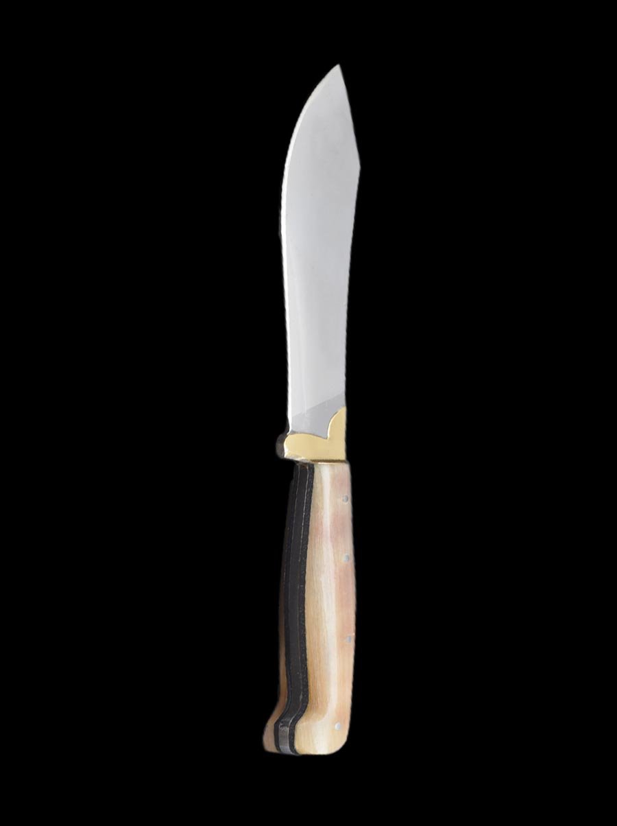 Χειροποίητο μαχαίρι κατασκευασμένο στο καμίνι μας κοπανιστό στο χέρι με σφυρί και φωτιά. Λάμα από γνήσιο ανθρακούχο ατσάλι 5 mm και λαβή από κέρατο κριού. Σύντροφος στη φύση και το μέγεθός του το καθιστά κατάλληλο για ξεράχισμα ζώων, κόψιμο κλαδιών και ξύλων. Προδιαγραφές για σκληρή δουλειά. Ένα μαχαίρι κατασκευασμένο στο εργαστήριο μας από υλικά πρώτης ποιότητας για αντοχή σε βάθος χρόνου. Η λάμα του είναι κατάλληλη σε μέγεθος και σκληρότητα για κόψιμο κλαδιών, κόψιμο κρέατος, κοπάνισμα, πελέκημα, επιβίωση και γενικής χρήσεως. Η λαβή βοήθα στην σταθερότητα και στην προστασία του χεριού κατά τη χρήση για μεγάλες παλάμες.Οδηγίες