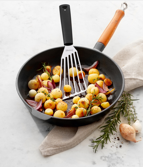 Για χρήση σε πλατό ή τηγάνι. Πολύ στιβαρή, με γερό νεύρο για σκληρή χρήση. Μπαίνει στο πλυντήριο πιάτων. Κατασκευασμένο στο Σόλινγκεν της Γερμανίας.