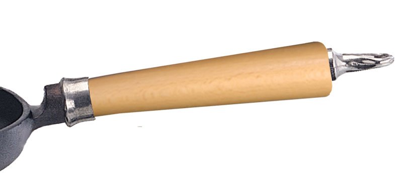 Πολύτελής λαβή, από ξύλο βελανιδιάς ,μεγάλης αντοχής που δένει όμορφα πάνω στο σκεύος και προσφέρει ιδανικό και σταθερό κράτημα. Το κολάρο στην αρχή της λαβής αποτρέπει την μετάδοση της θερμότητας στη λαβή. στο τέλος της διαθέτει κρίκο για να κρεμάσετε εαν επιθυμείτε το σκεύος.