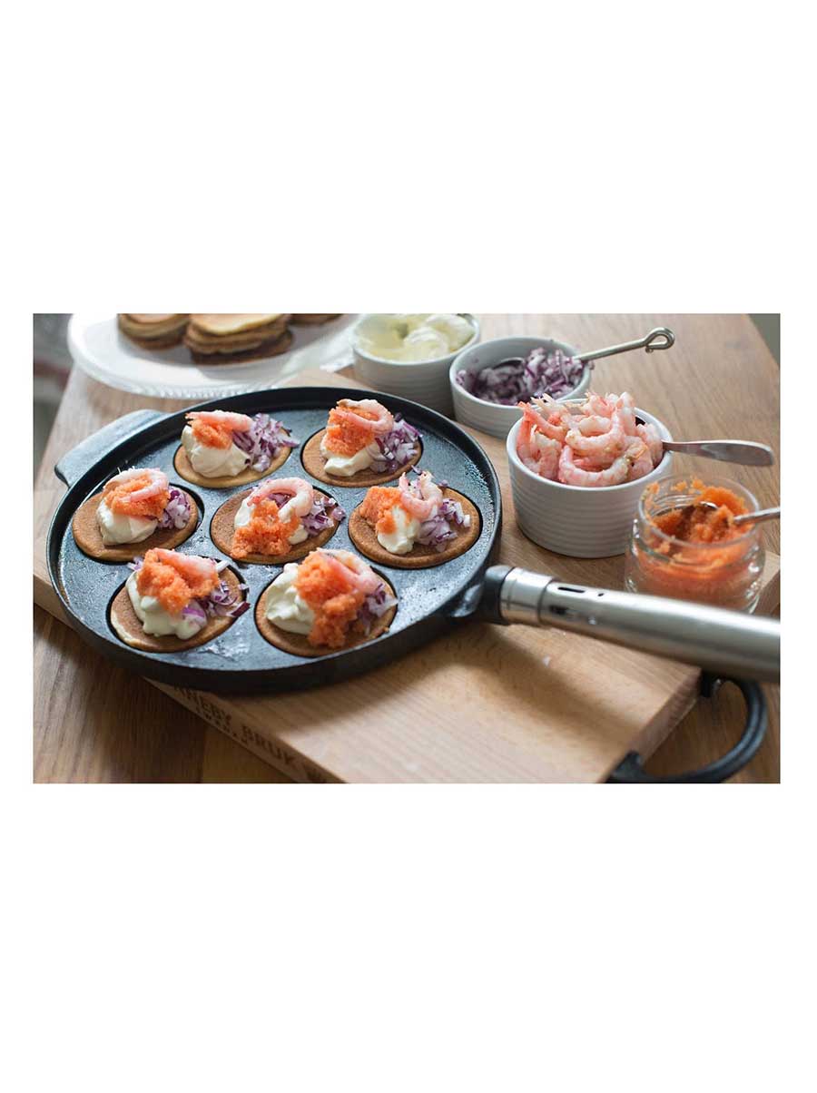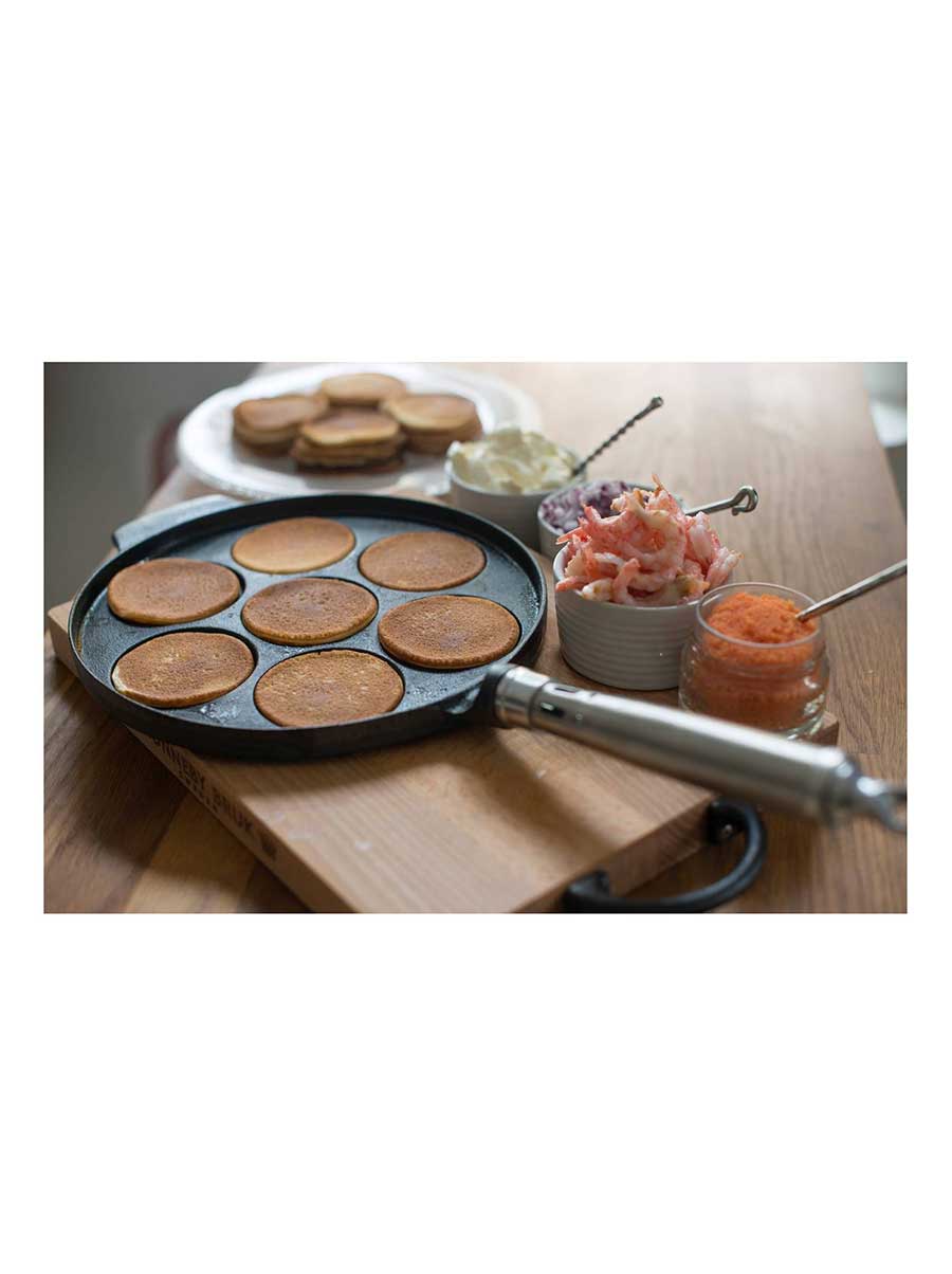 Ronneby Bruk Τηγάνι Μαντεμένιο Για Pancakes 7 Θέσεων Με Ξύλινη Λαβή 24 εκ Maestro