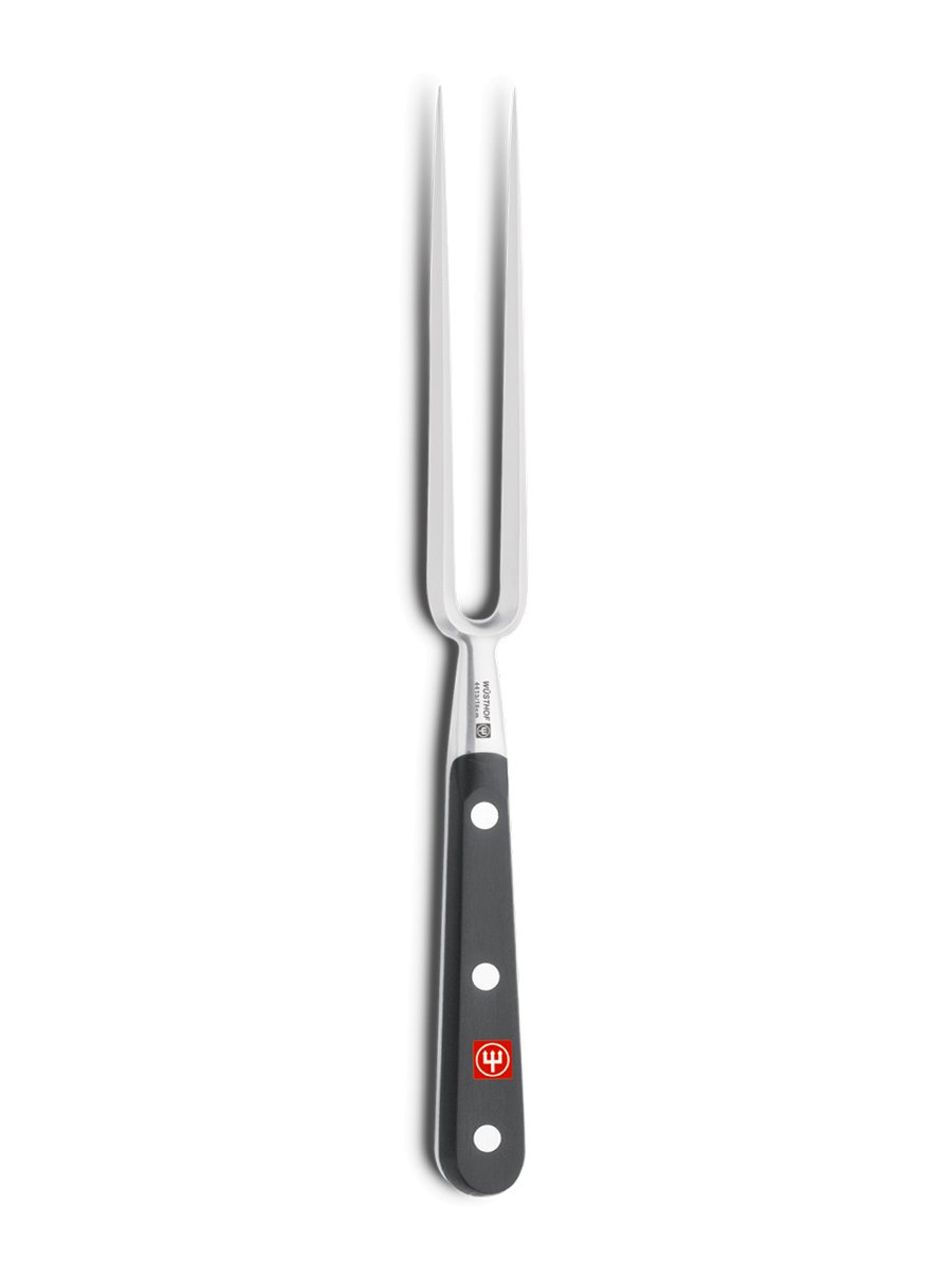 Wusthof Classic Πιρούνα 18 εκ. Η σειρά Wüsthof Classic με λαβή από συνθετικό υλικό με τριπλά καρφιά και πριτσίνια, σφυρήλατη, υψηλής αισθητικής. Η πιο ολοκληρωμένη γκάμα μαχαιριών και εργαλείων κουζίνας. Χρησιμοποιείται για τη συγκράτηση και την ανύψωση κρέατος για κοπή ή περιστροφή και σερβίρισμα.